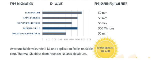 COMPARAISON DES COEFFICIENTS DE CONDUCTIVITE THERMIQUE-LAMBDA (THERMAL-SHIELD COMPARE AUX ISOLANTS TRADITIONNELS)